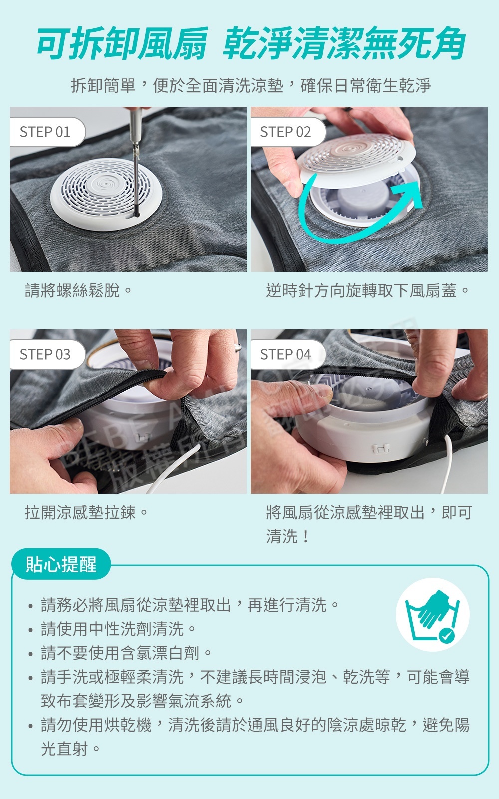 ●背部特別配備冰袋口袋,可放入冰袋,讓風扇風經過冰袋後轉化為沁涼冷風