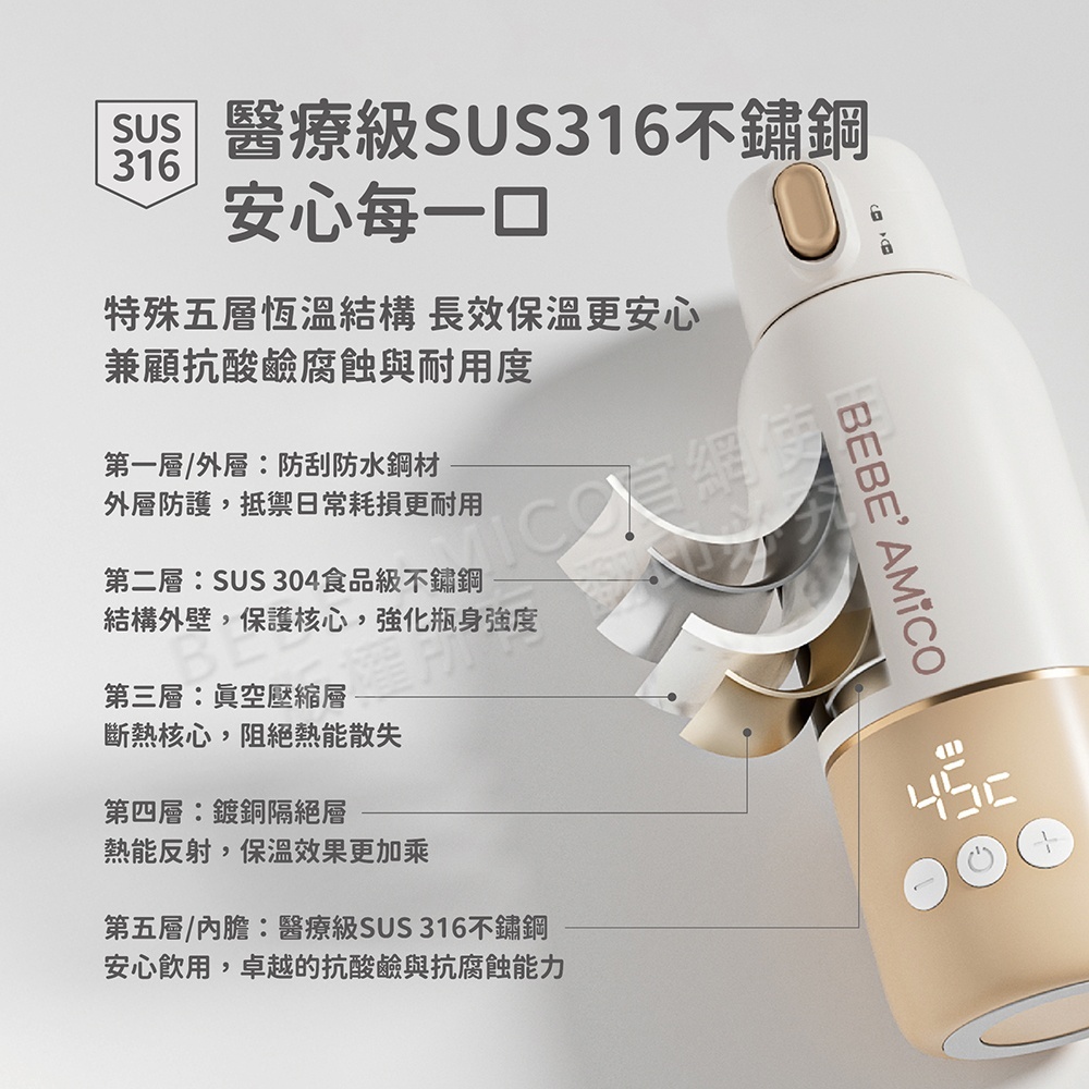 ●特殊五層恆溫結構,長效保溫更安心,兼顧抗腐蝕與耐用度