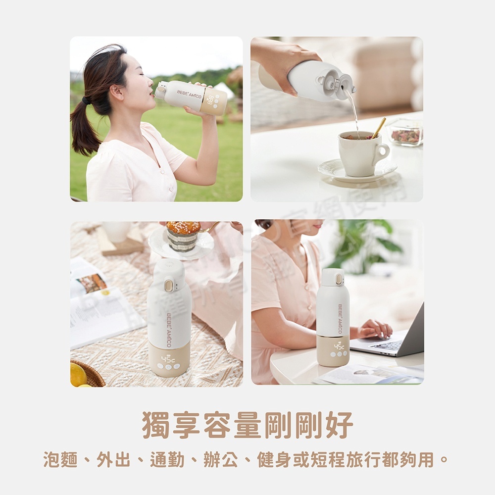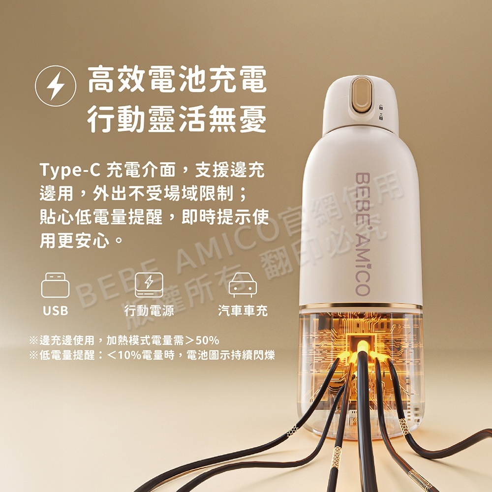 ●加熱至設定溫度後,自動啟動保溫,持續恆溫至關機或電量耗盡,外出也能安心備水