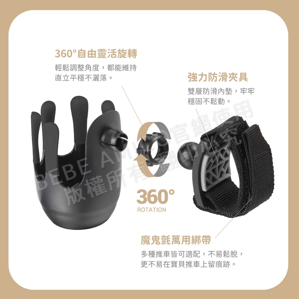 ●魔鬼氈萬用綁帶設計,多種推車皆可適配